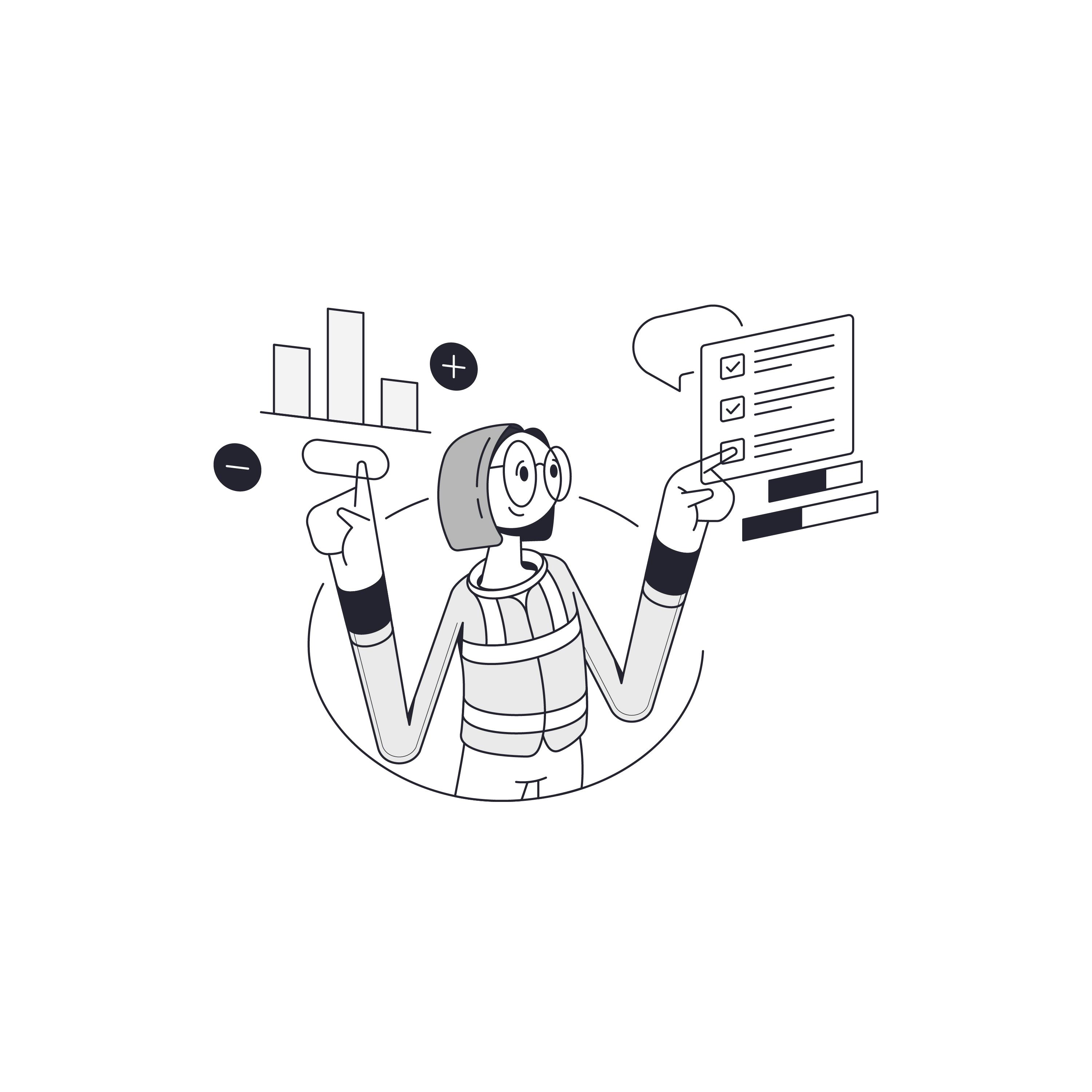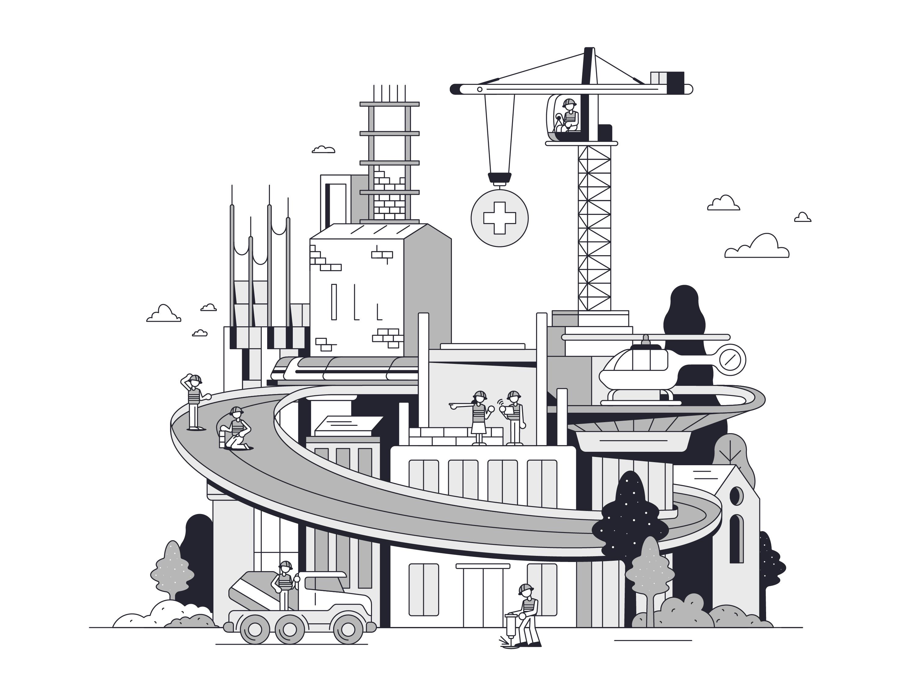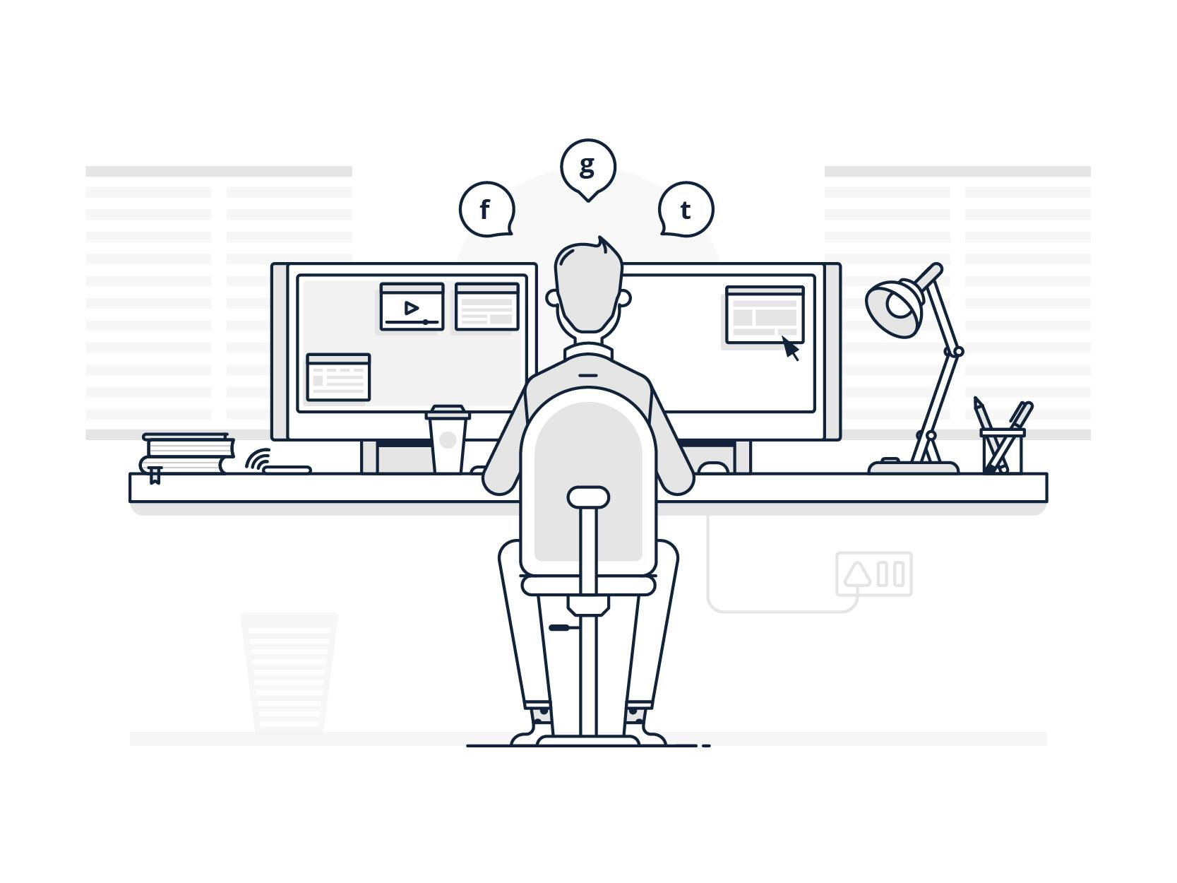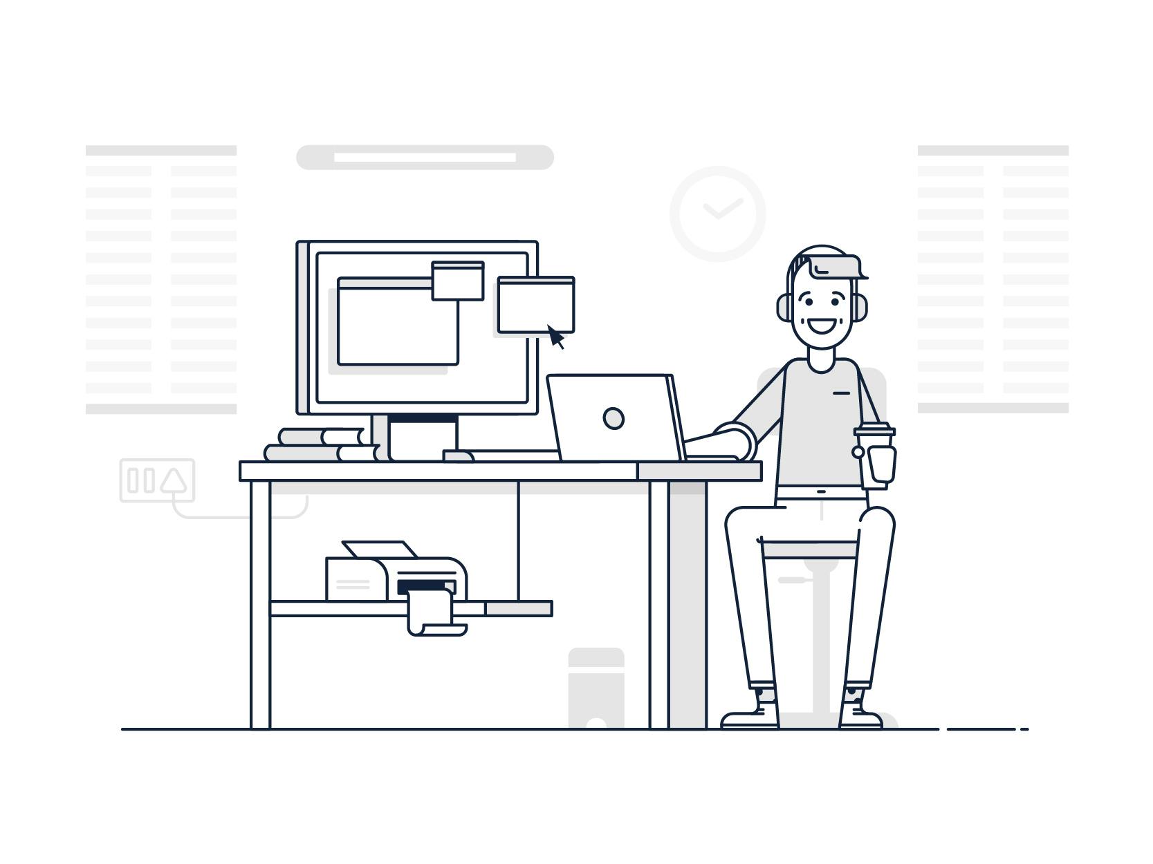 Monochromatic character illustrations for Grid, a window management tool. Engineers, designers, students.