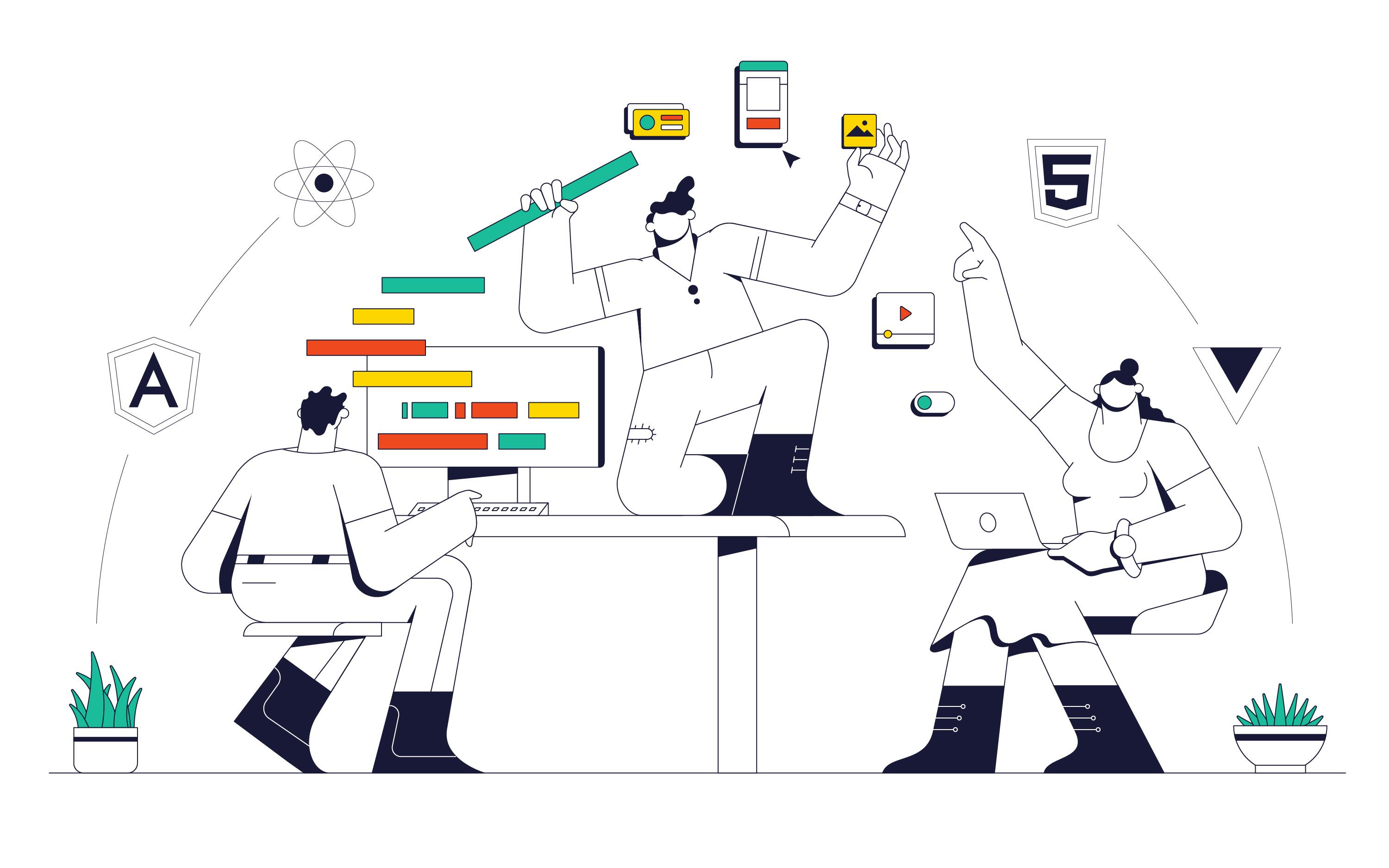 Brand illustrations for Flexer's marketing site. UI tools for web and mobile.