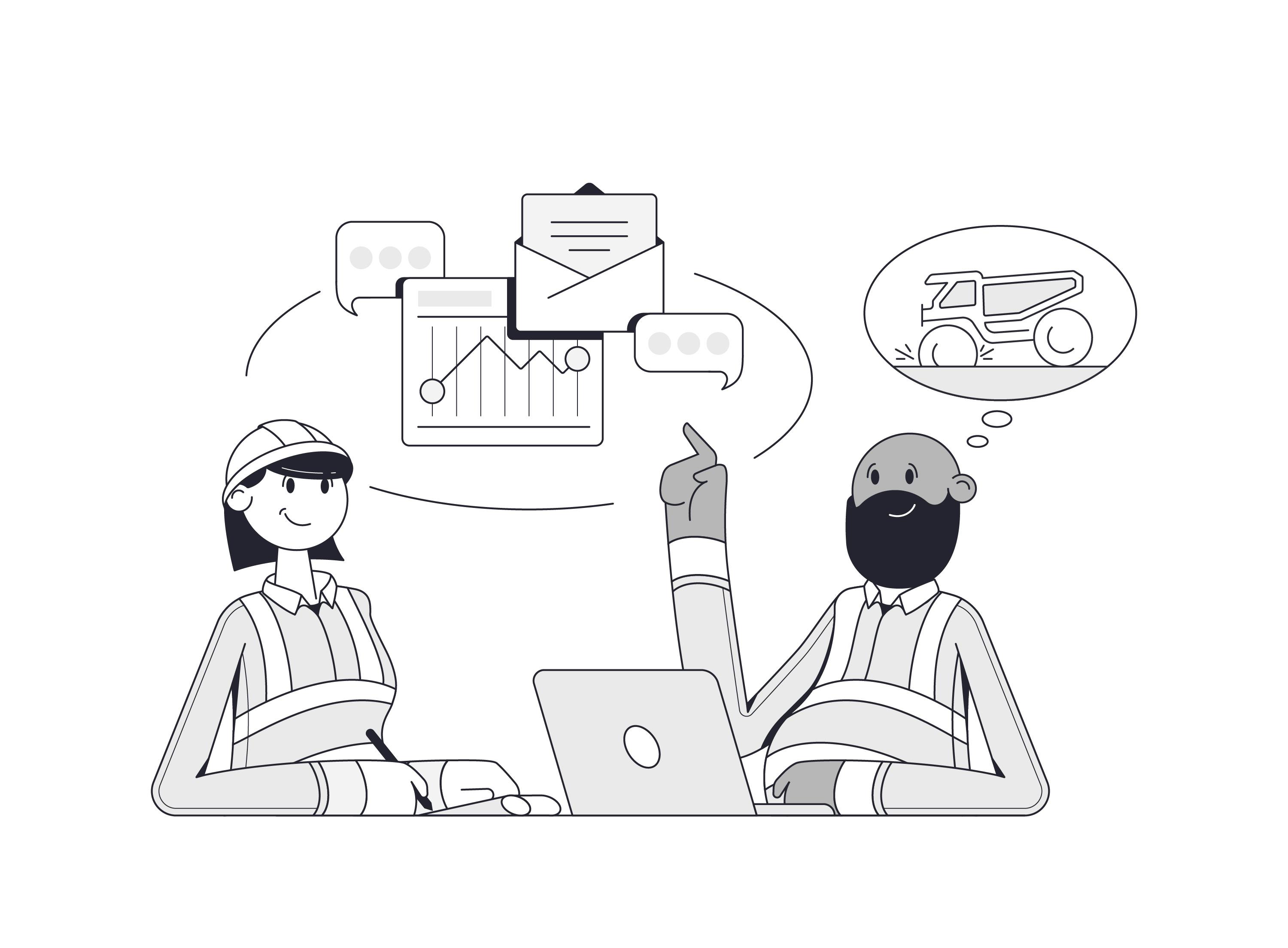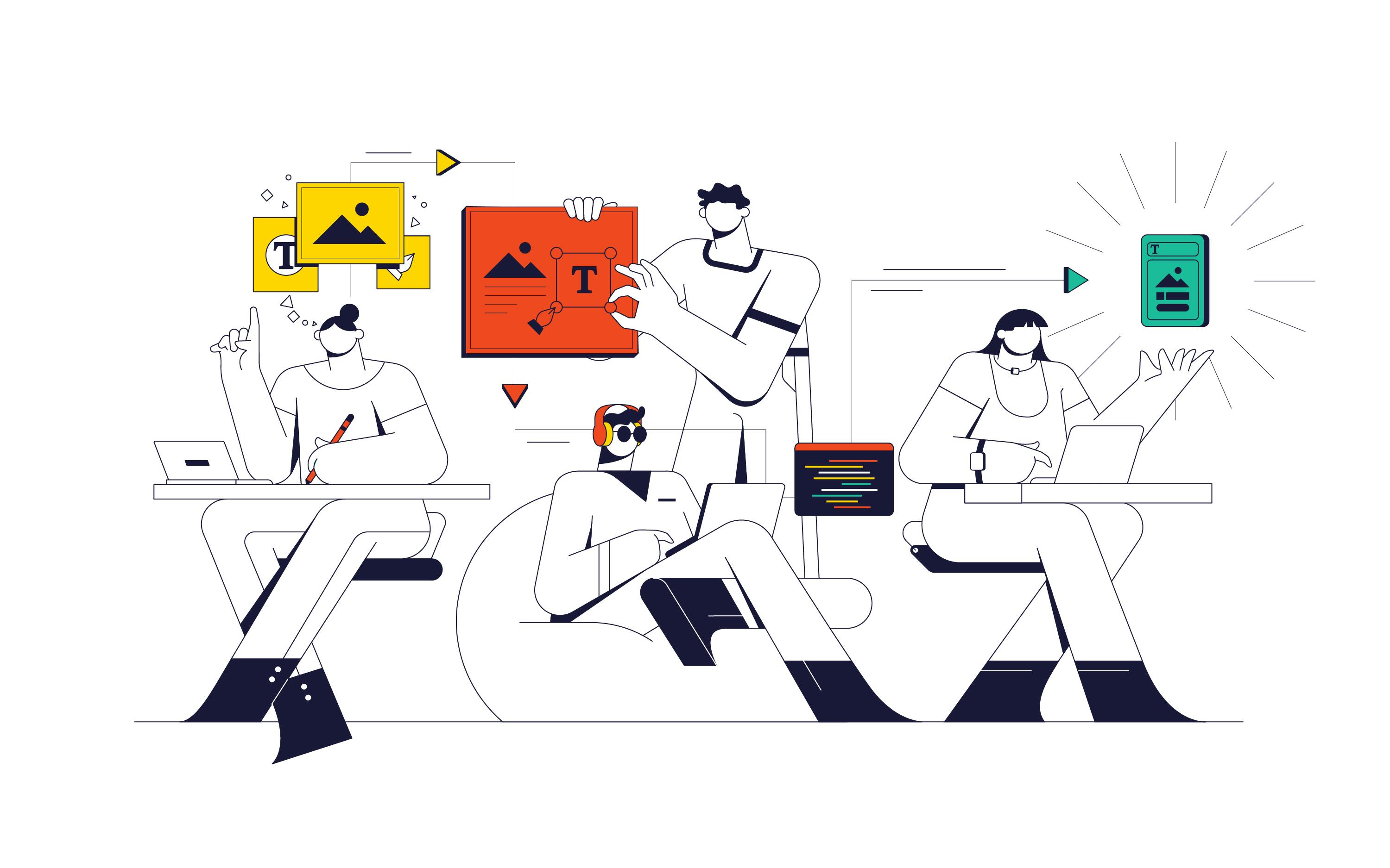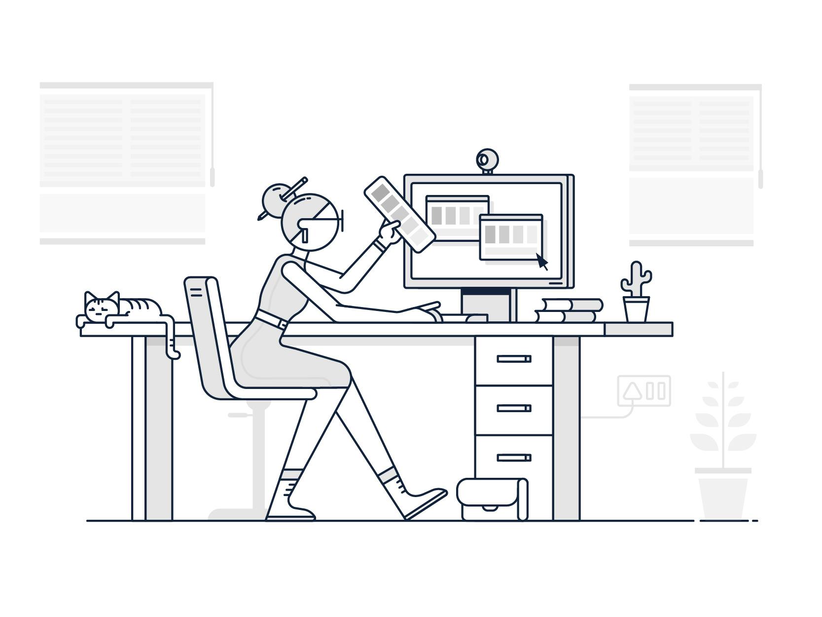 Monochromatic character illustrations for Grid, a window management tool. Engineers, designers, students.